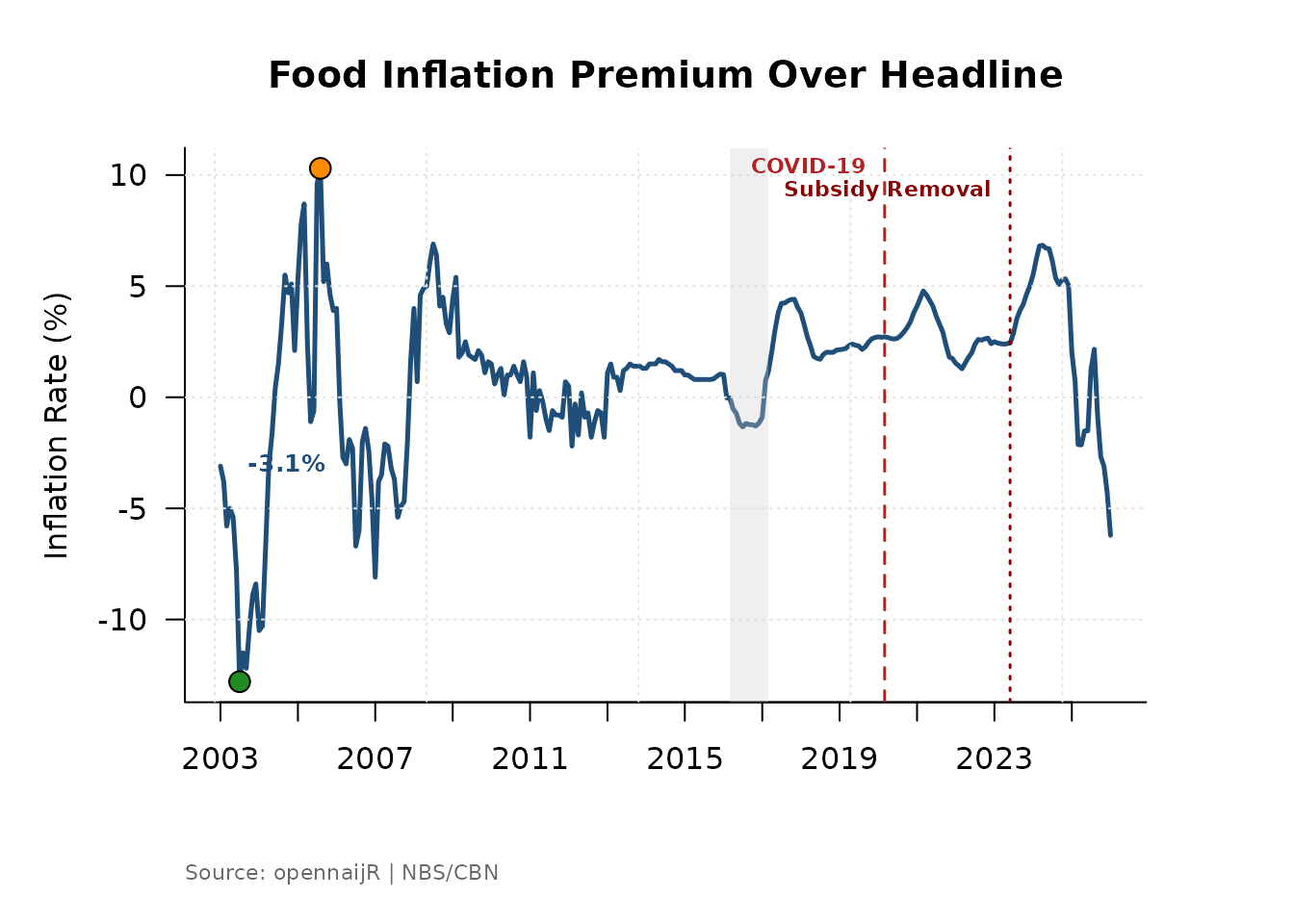 This makes the function reusable for NBS data, World Bank series, or any other monthly indicator you want to plot in the Nigerian macroeconomic context.